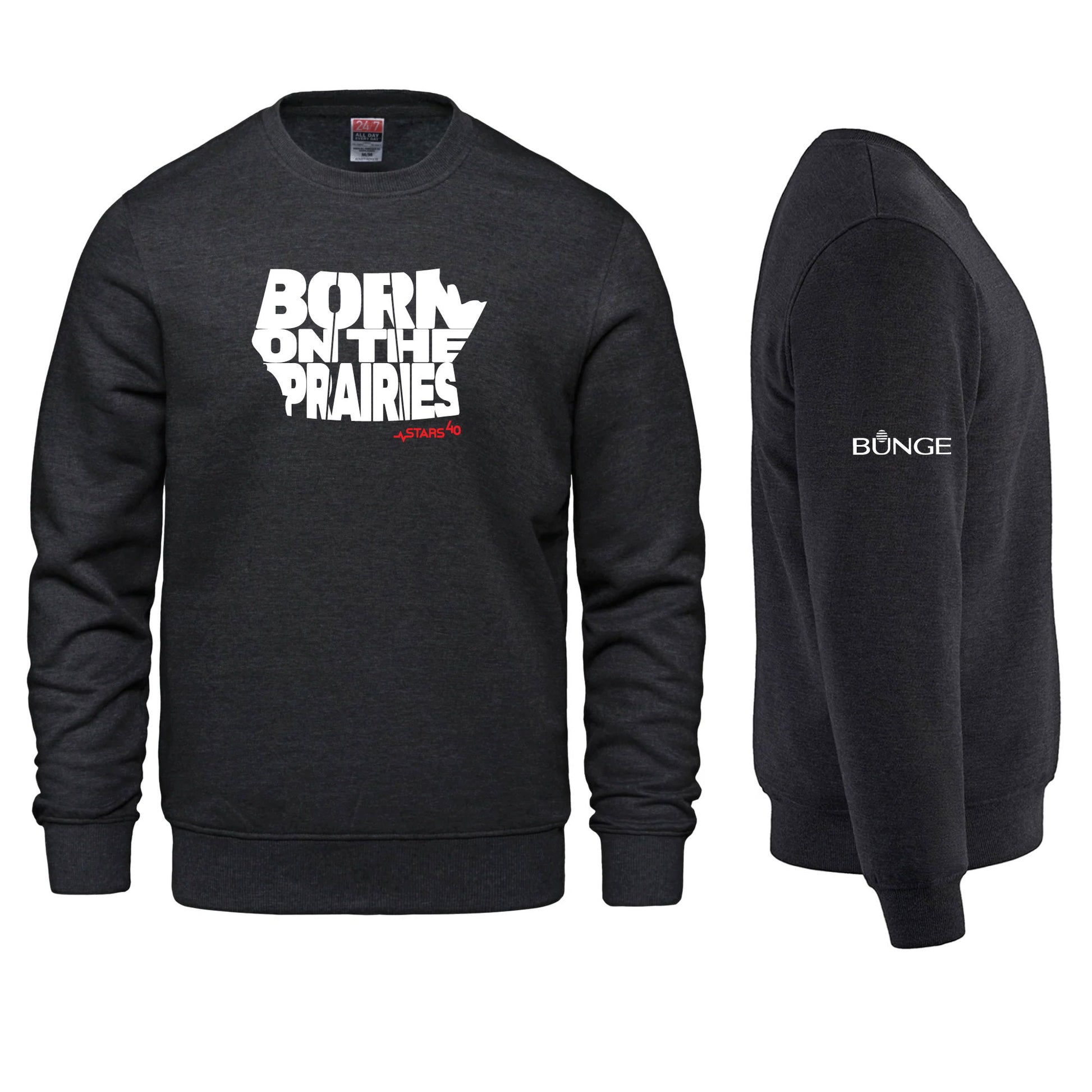 Celebrate STARS 40th with the new STARS/Bunge Born on the Prairies Crew Neck! Great New Name, Great New Logo, same great partnership. Walk around in style with your STARS/Bunge Born on the Prairies Crew Neck.